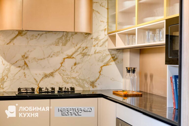 Стиль: Дизайнерские, Кухни без ручек, Кухни с витриной, Кухни с пеналом, Кухни со столешницей из камня, Современные, Стильные, Хай-тек